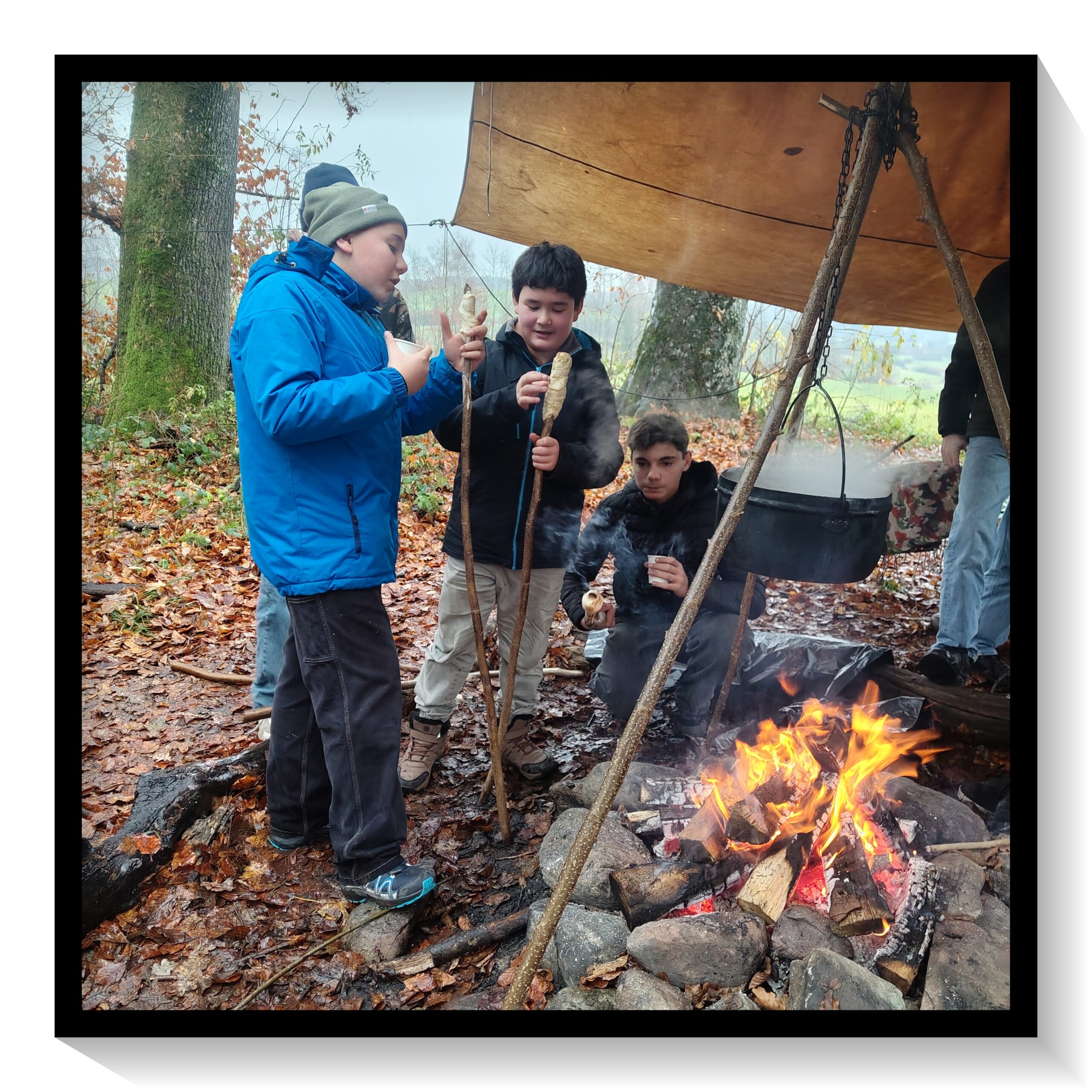 Selbst der Regen konnte die gute Stimmung nicht trüben: Der Outdoor-Kurs im Wald wurde zu einem echten Abenteuer, bei dem Gemeinschaft und Naturerlebnis im Mittelpunkt standen.
